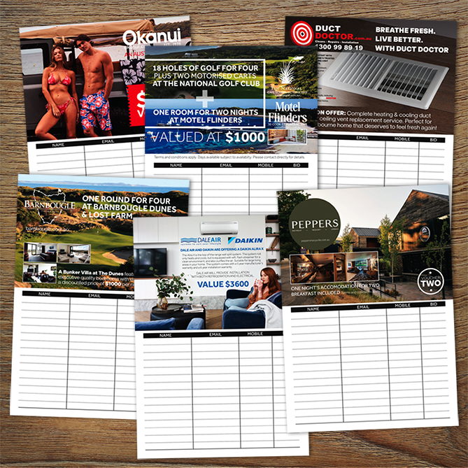 Design from concept to repro quality of the promotional event flyer (left), six main auction item promotional flyers (middle) and 10 bidding forms for the event (right). All proceeds raised from the event went to The Lighthouse Foundation For Youth, which offers support, guidance and homes to vulnerable young people.